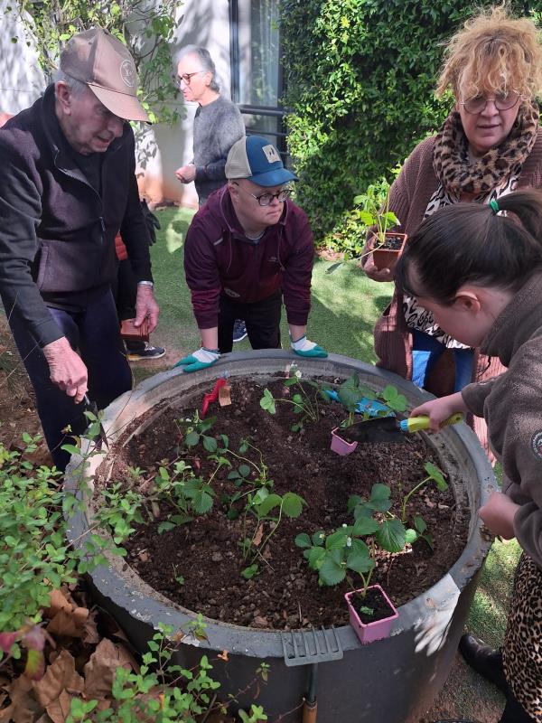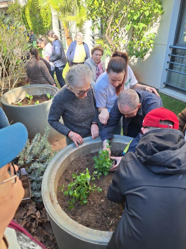 Dans le jardin de l'Unité protégée,résidents et encadrants ont partagé bien plus qu'une activité de jardinage.
